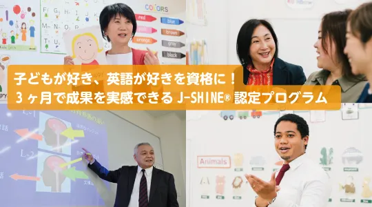 という方には、神田外語キッズクラブの「児童英語講師養成講座」(J-SHINE®資格認定講座)がおすすめです。ポイントは以下の4つです。